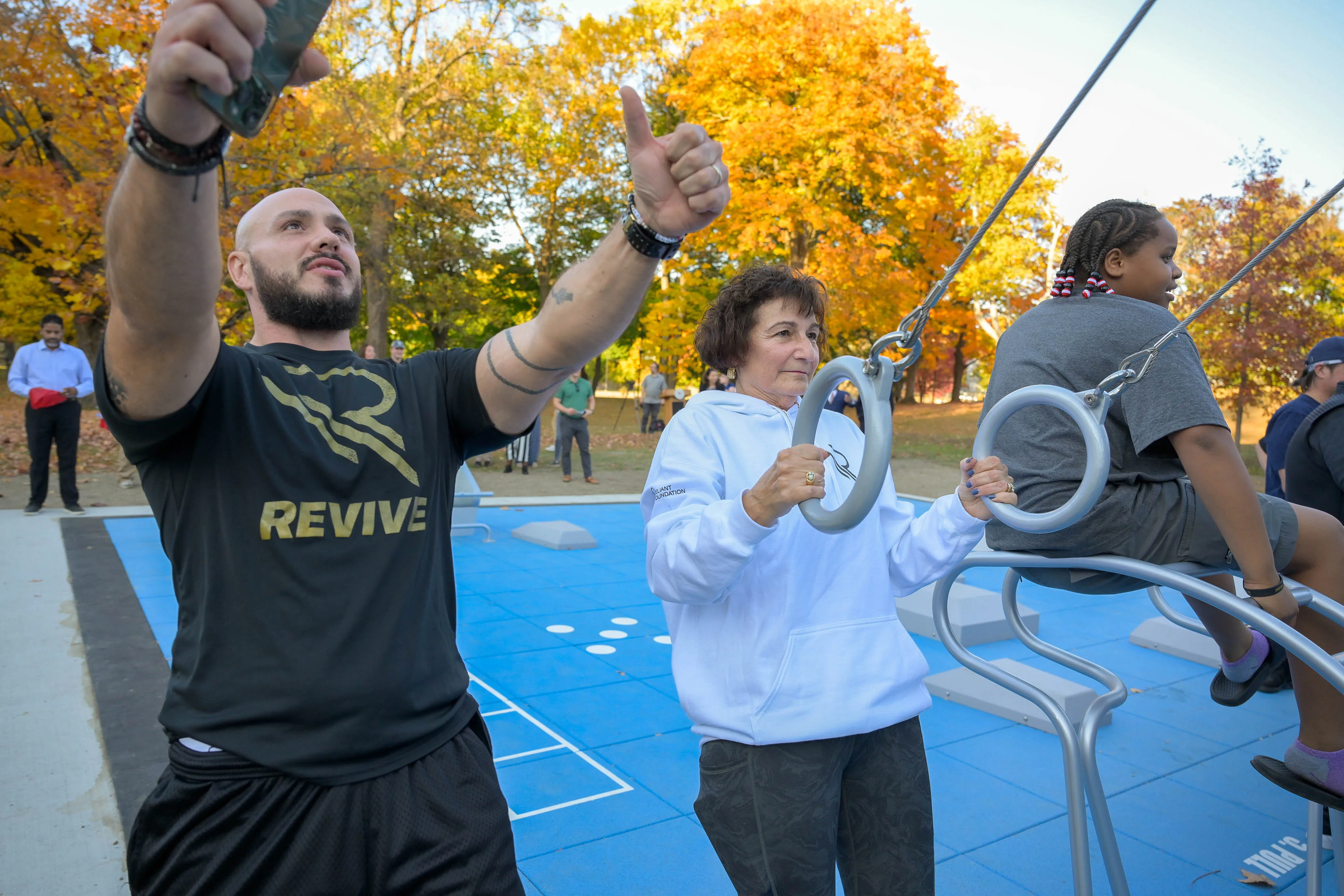 After finding the Fitness Court through community collaborations focused on wellness and inclusion, Anthony and the larger Revive team supported the City of Worcester at the ribbon-cutting ceremony for the University Park Fitness Court.
