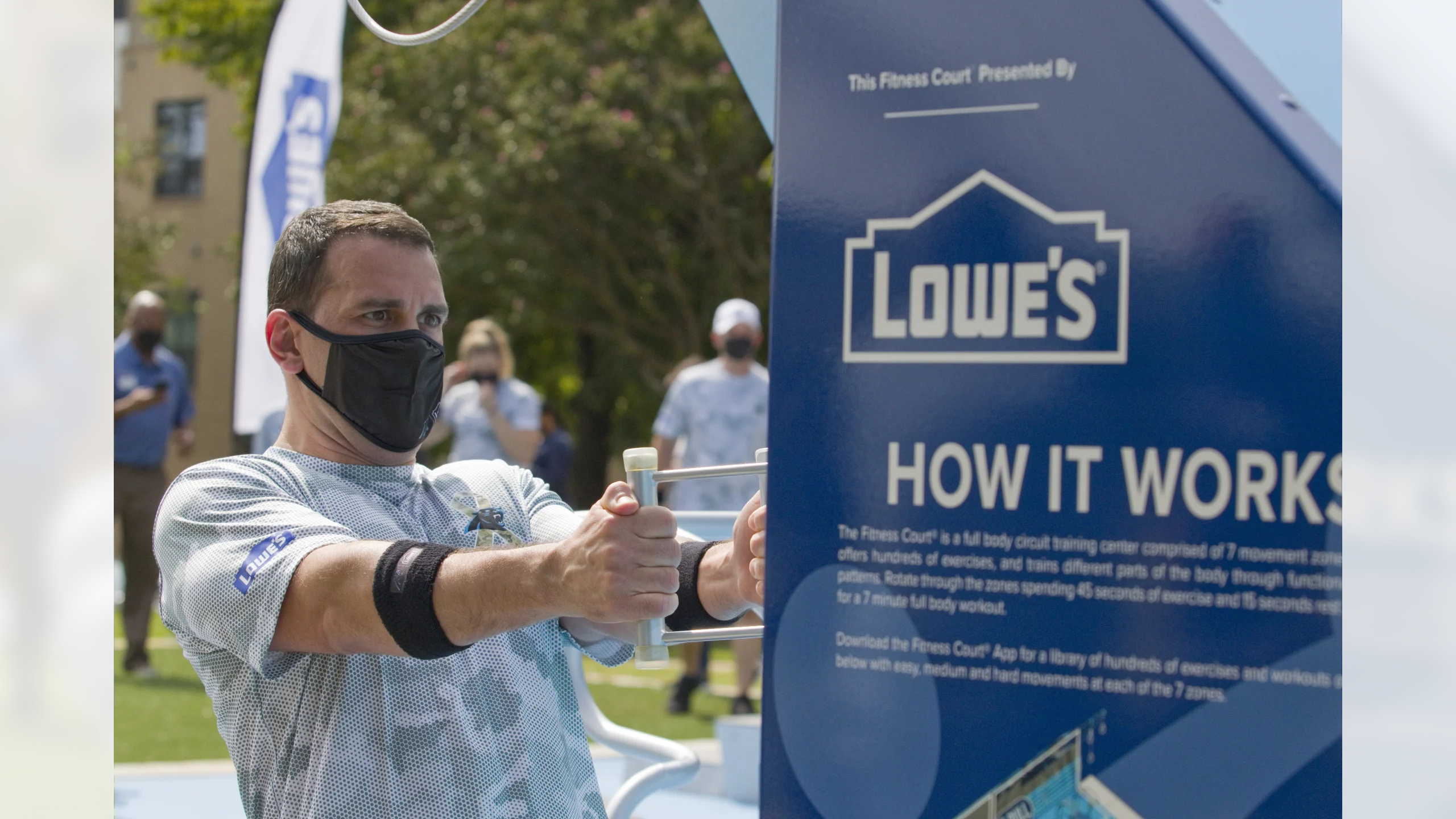 "Serving those who serve our country has long been a priority for both the Carolina Panthers and our friends at Lowe’s,” said Panthers President Tom Glick. “We are excited to see the enthusiastic response that the Fitness Court is generating by both veterans workout groups and the community at large.” Mecklenburg County’s Parks and Recreation executive director Lee Jones emphasized the importance of accessibility during the pandemic: “One of the important aspects of the Veterans Park Fitness Court is that it's outdoors. It provides the opportunity for safe and socially-distanced workout opportunities for citizens who may have limited access to indoor workout facilities, or who are not comfortable with indoor workout options.”
