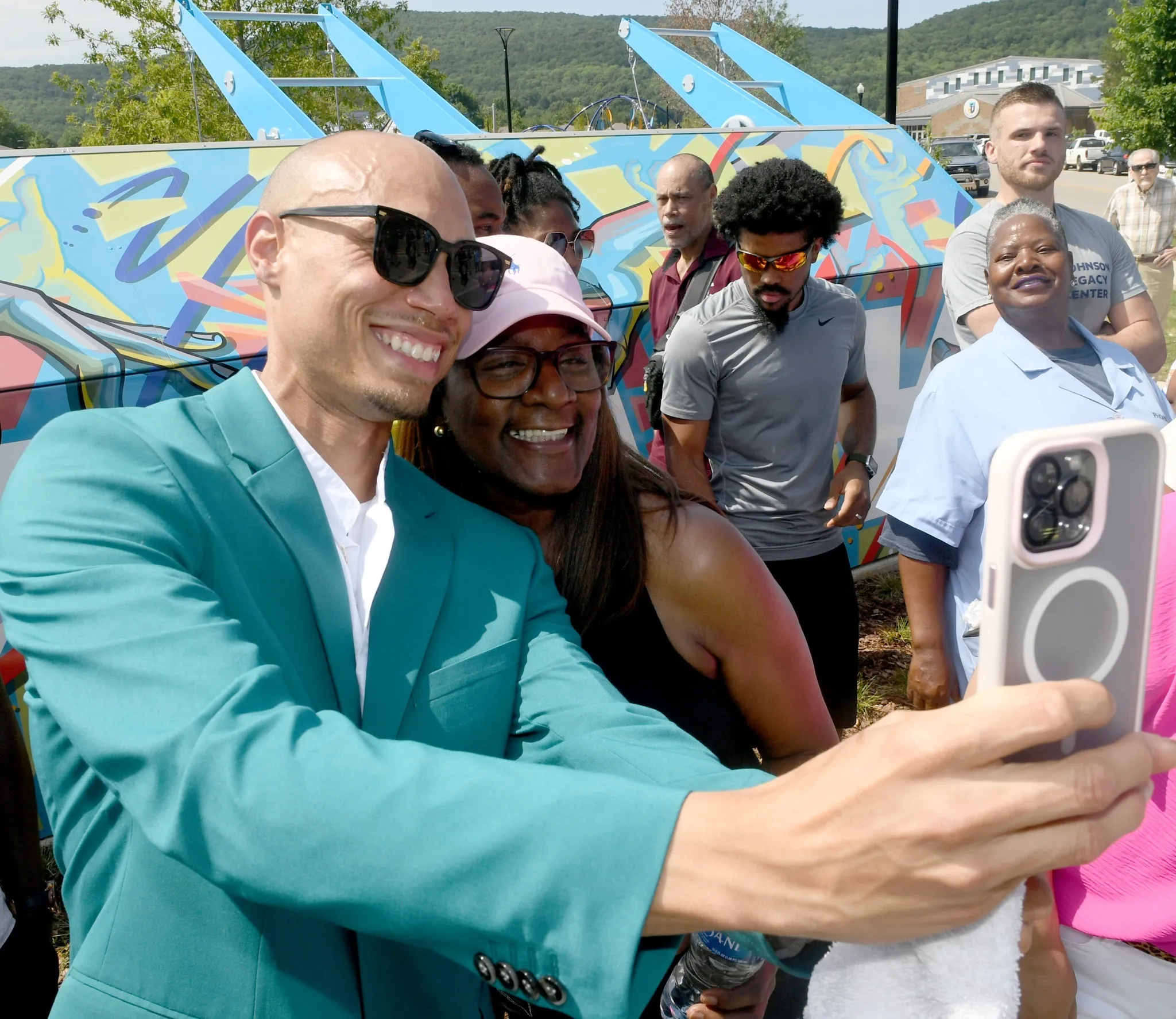 FRESKO’s piece embodies many abstract hands to symbolize the spirit of community, and he uses specific colors to represent themes. Red is for energy, blue for Johnson High School (which closed in 2016) and yellow for the promise of the future. With his family in attendance at the ribbon-cutting ceremony in late June, FRESKO spoke about the importance of culture, history and the legacy we all leave behind in hopes of a brighter future.