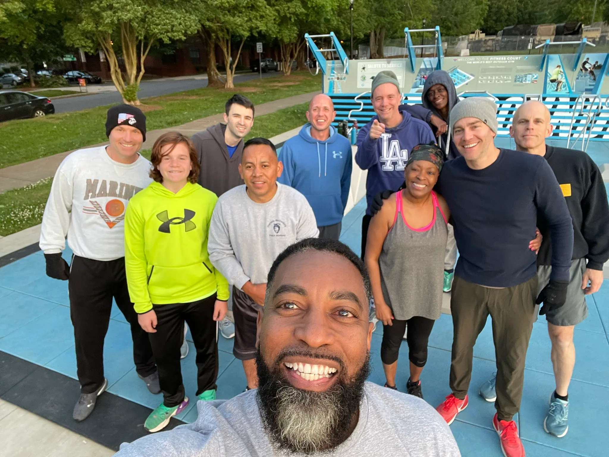 Beyond our weekly workout, it has been great to see are the other groups who are also using the Fitness Court. There is a men’s F3 work out there on Friday mornings, we have shared space with a yoga class held there, and individuals from the adjacent apartments are also frequent users of this great public amenity.