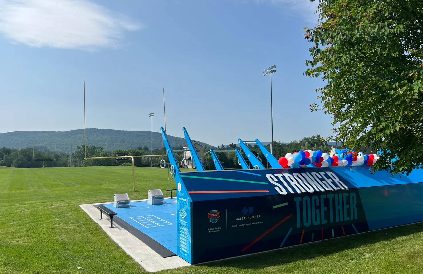 The Town of Lee joined the Blue Cross Blue Shield of Massachusetts campaign this July as the first campaign partner in western Massachusetts. The launch event brought out the entire community – nearly 100 people were in attendance as the Fitness Court® behind Lee Middle and High School was announced to the public.
