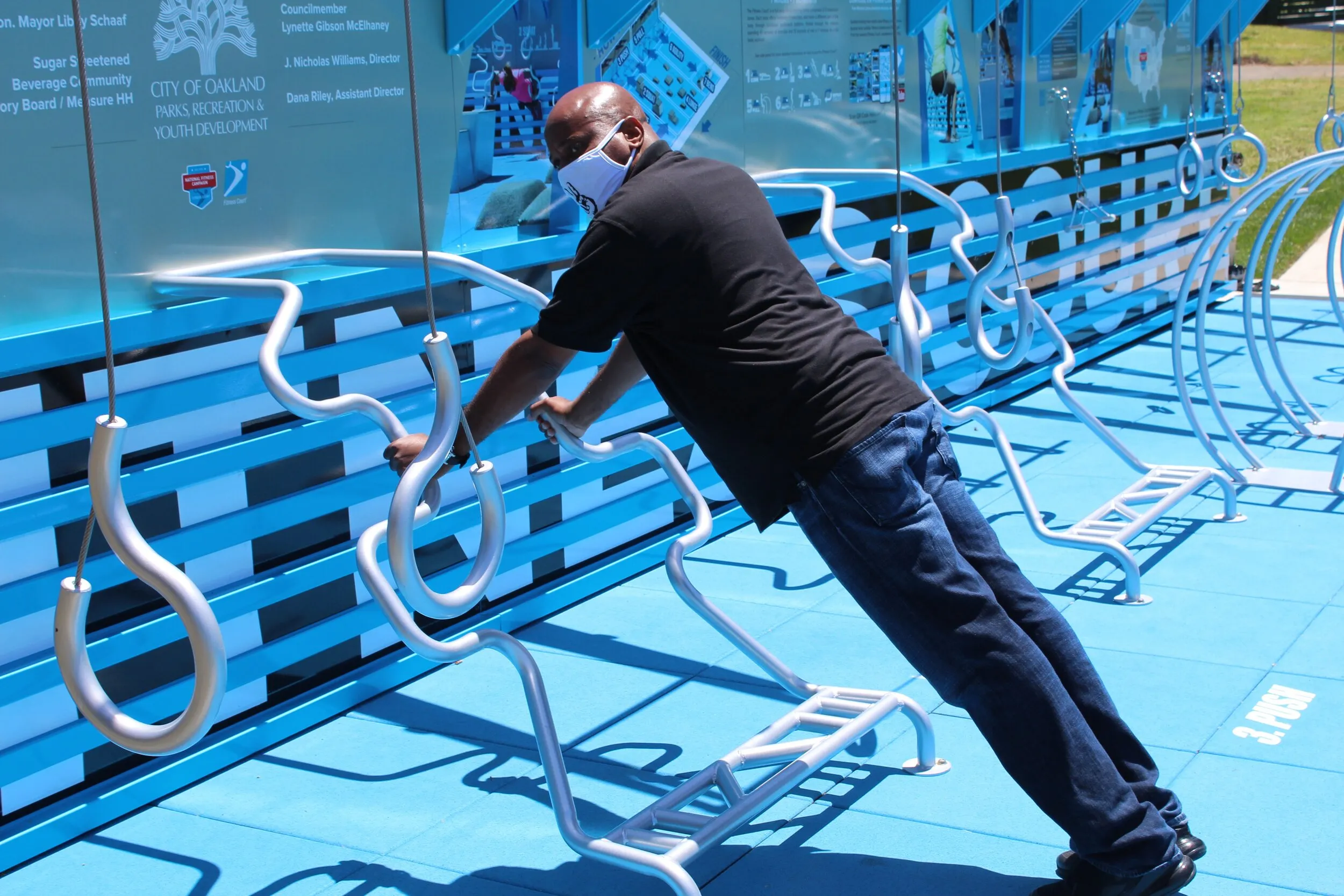 “The new outdoor fitness courts prove that equity is a priority for OPRYD. The courts provide residents access to a free quality platform for meaningful physical activity and we hope will allow for community bonding and building” stated Nicholas Williams, Director OPRYD. “Oakland deserves this, so we made it happen!”