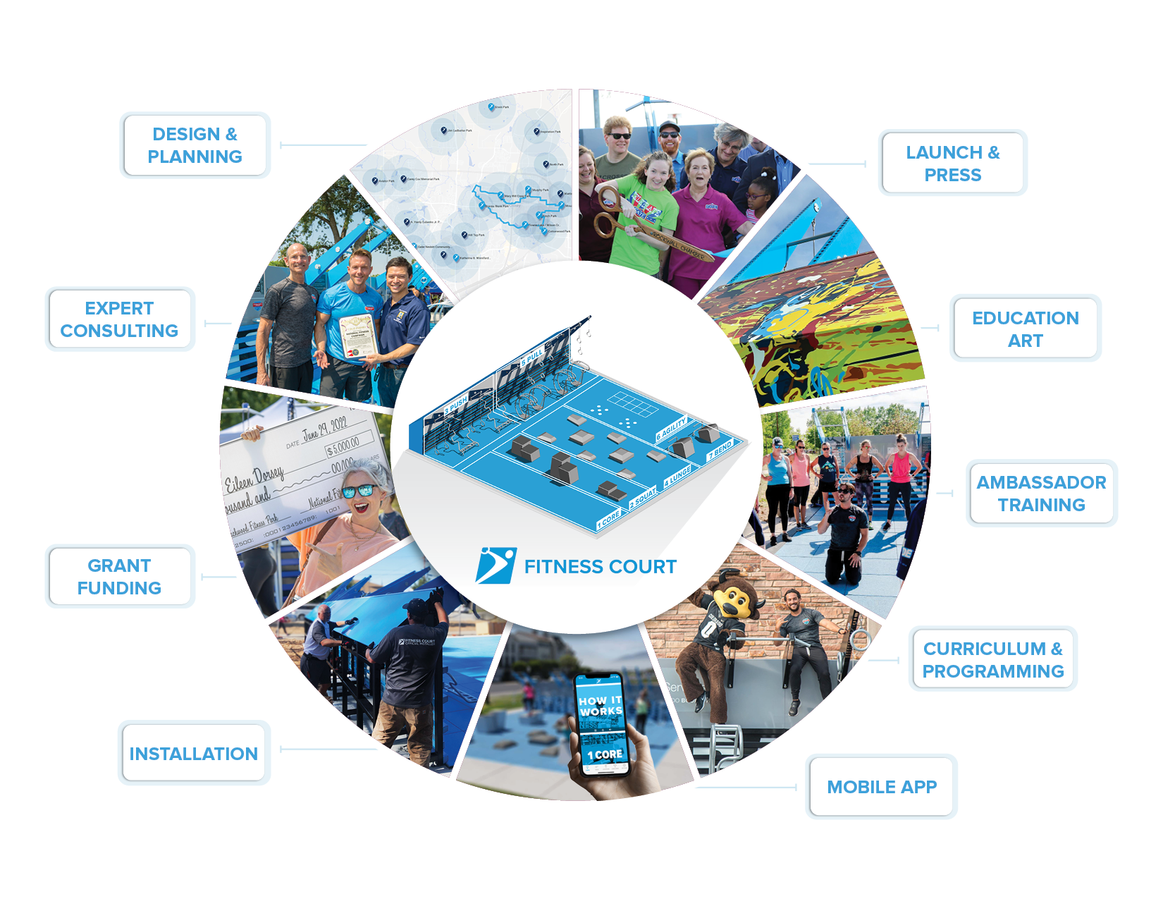 Our team of experts are here to help provide members support in gaining school consensus, gathering funding, site selection, installation, press and media, Ambassador training, a free mobile app, and much more. Joining the Campaign is a lifelong membership to a network of schools and communities across the country. We look forward to working with your school to plan, build and activate the world's largest free outdoor gym network.